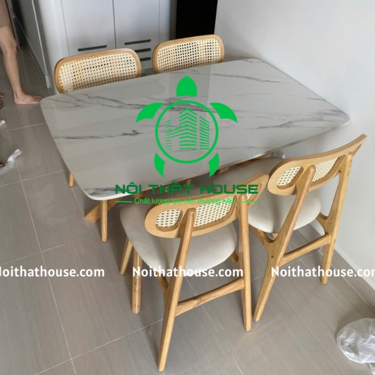 - Bàn đá bóng trắng chống ố, chống trầy xước và chống thấm nước dài 1m2x750x740 đặc biệt đá dày 15mm, chân X gỗ Cao su.