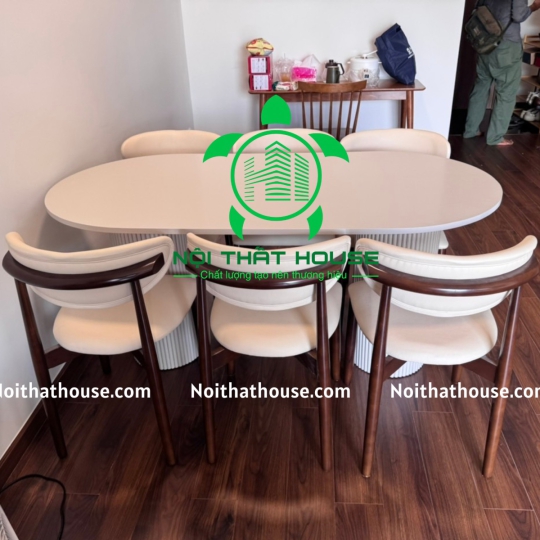 - Ghế Gỗ Cao su 100% (bọc đệm Simili trắng sữa Rất êm ái), bọc đệm theo yêu cầu