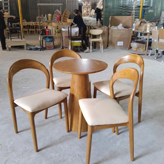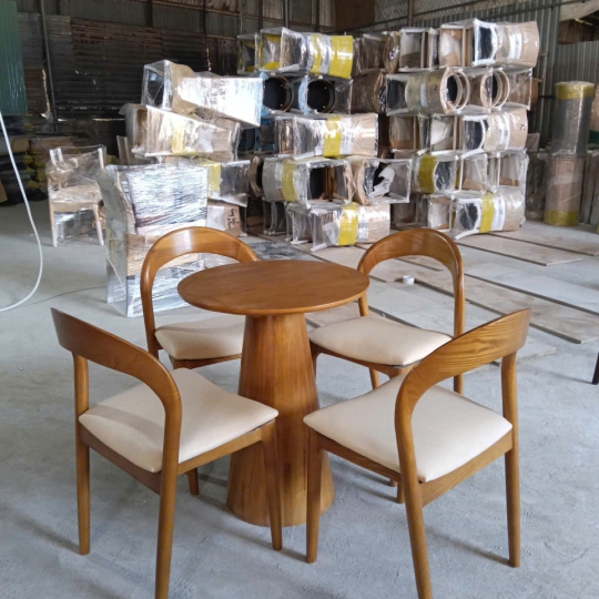 BỘ BÀN CAFE TRỤ ỐP D60 + 4 GHẾ NEVA GỖ ASH