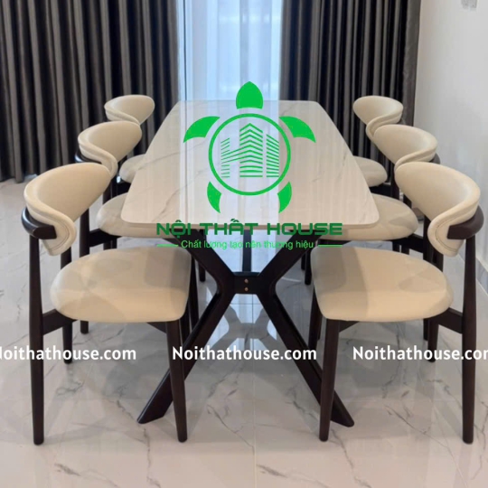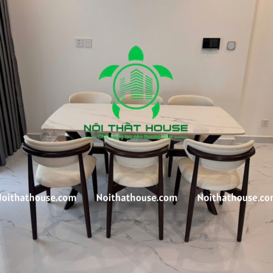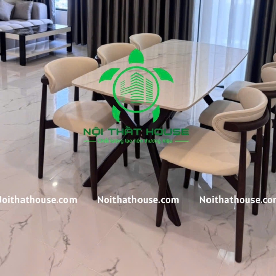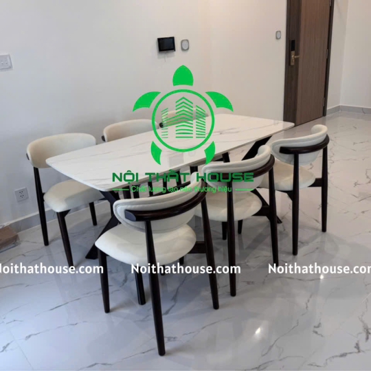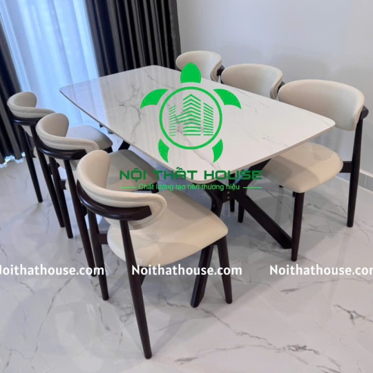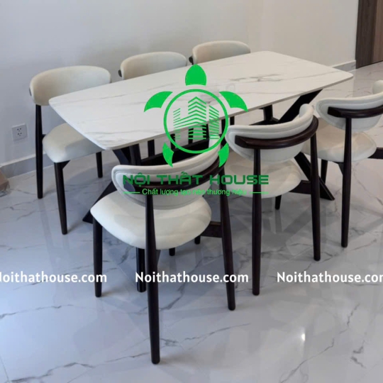 BỘ BÀN ĐÁ TRẮNG 160 HIỆN ĐẠI kết hợp 6 ghế ăn