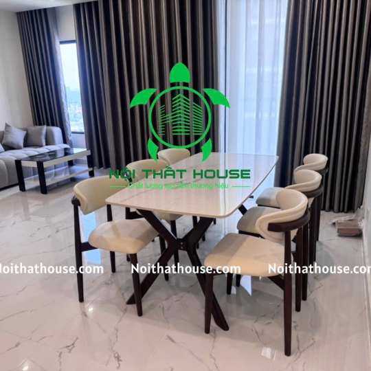 BỘ BÀN ĐÁ 160 KẾT HỢP 6 GHẾ TỰA TRĂNG