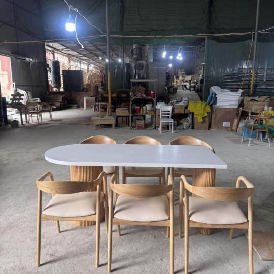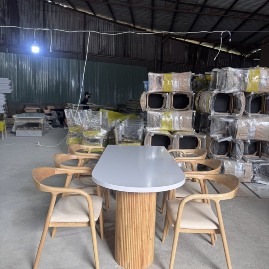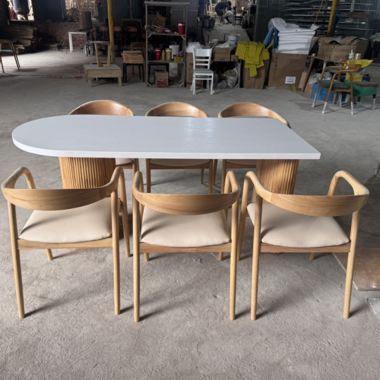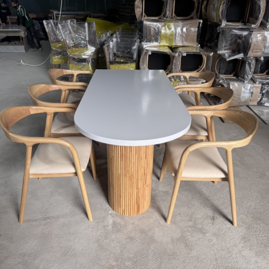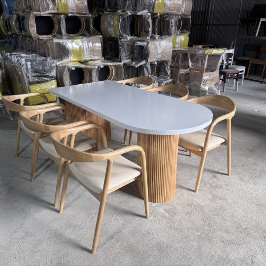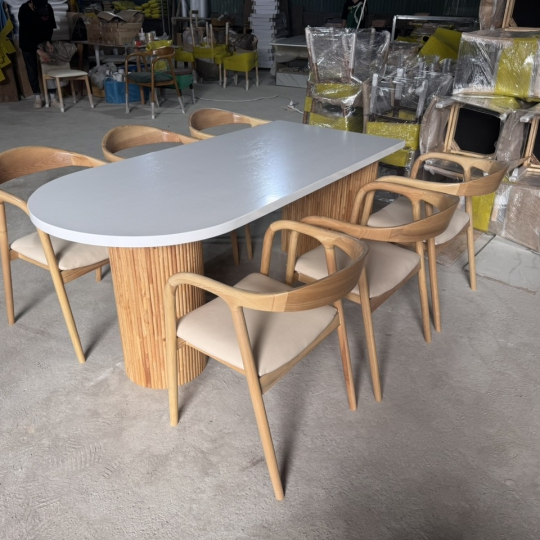 BỘ BÀN NEVA GỖ ASH CÓ TAY 180 DECOR ĐẸP